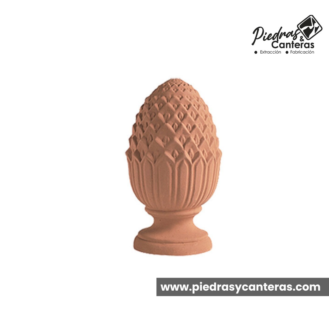 - La Piña Renacimiento es de barro extruido y prensado, color barro-terracota.
