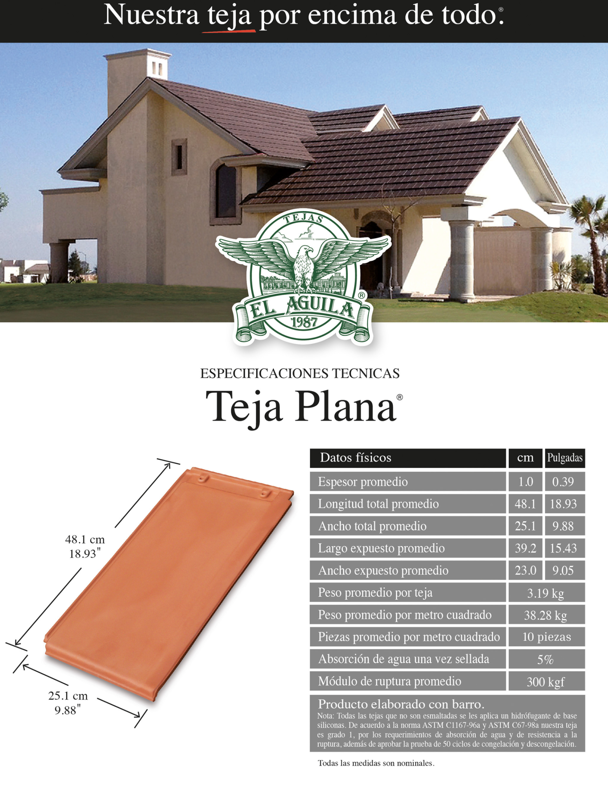 | Datos físicos: | Centímetros: | Ficha Técnica – Teja Plana |